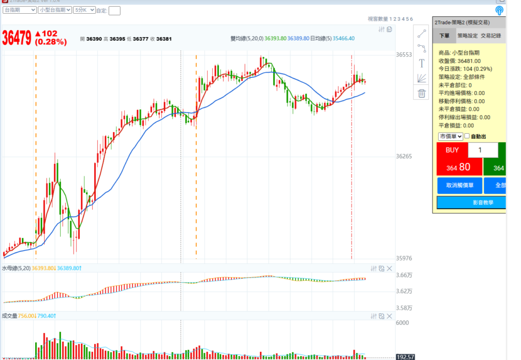 台指期一分K 走勢震盪上漲,目前是強勢多方 不要隨意放空
