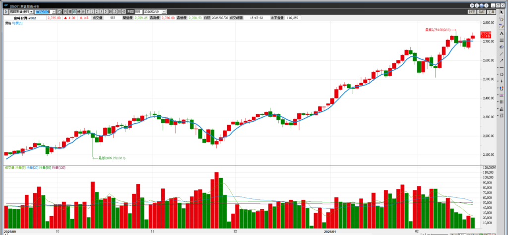 過年期間台指期放假,我們要看摩台期指數。先看日K再看分K。摩台指日K在過年期間雖有拉回,但是依然是拉回後再往上,是一個多頭走勢。所以台股開高機率很高,因為摩台已經率先上漲。 開市當天過去台股開高機率有八成。第二個看摩台指數五分K走勢,可以明顯看到先拉回再往上。所以長線往上的情況下,短線要在拉回處找買點。