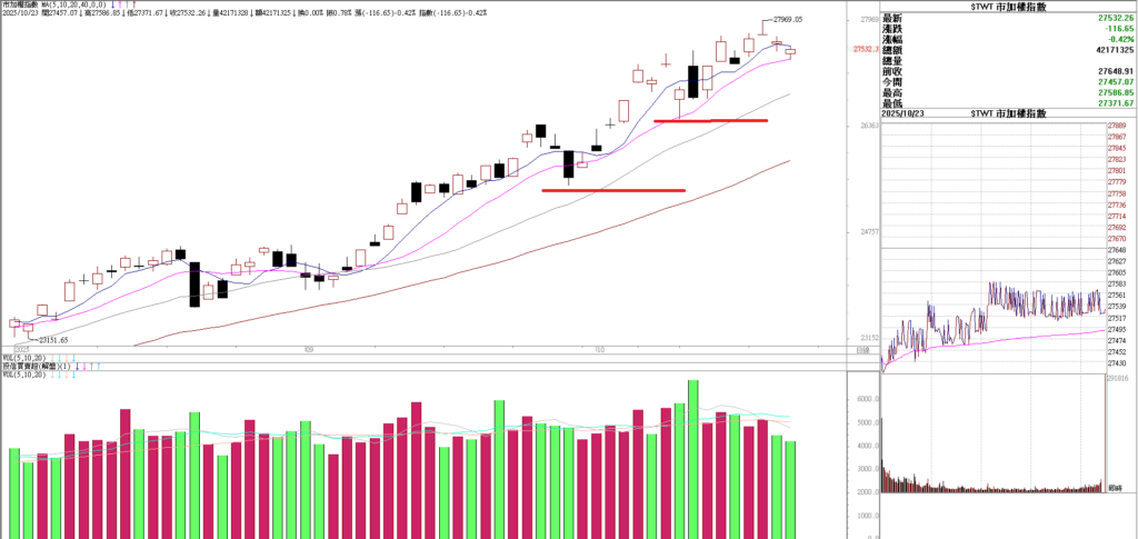 大家早安,台股上周先漲後跌 最後上漲 229點,上週有創新高到27969 最後收盤在27532 ,高檔回檔447點。最近波動大,隨便一天都容易有三四百點的行情,對於做期貨、選擇權的人來說 算是有浪衝,有波動。抓到好的時機點切入可以有不錯的報酬。