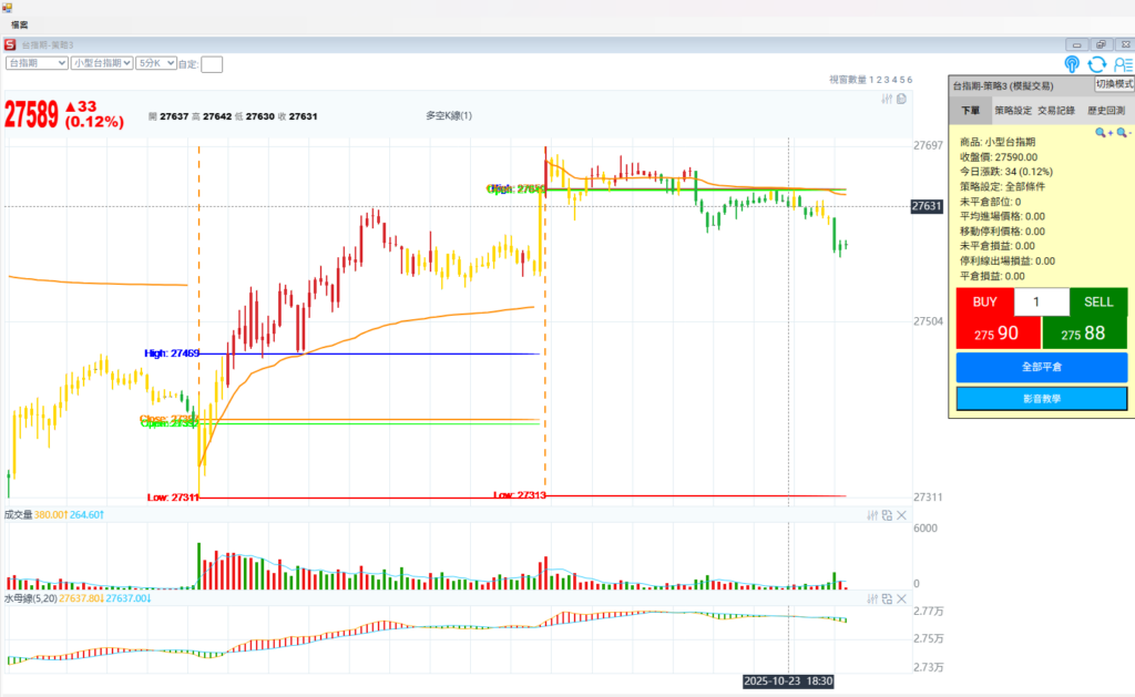 看台指期五分K + 多空K棒 +關鍵價,上週五的走勢白天先是開低走高 然後夜晚開高走低。走勢在關鍵價有撐的時候 是好的買點,在關鍵價漲不過的時候是好的賣點。