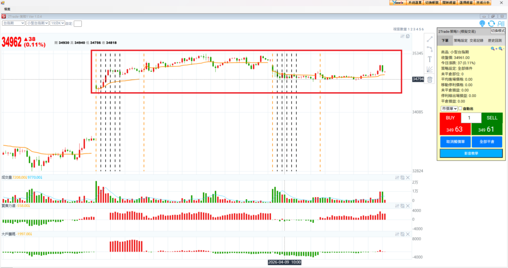 看台指期五分K ,台指期在前天大漲過後 橫盤整理,