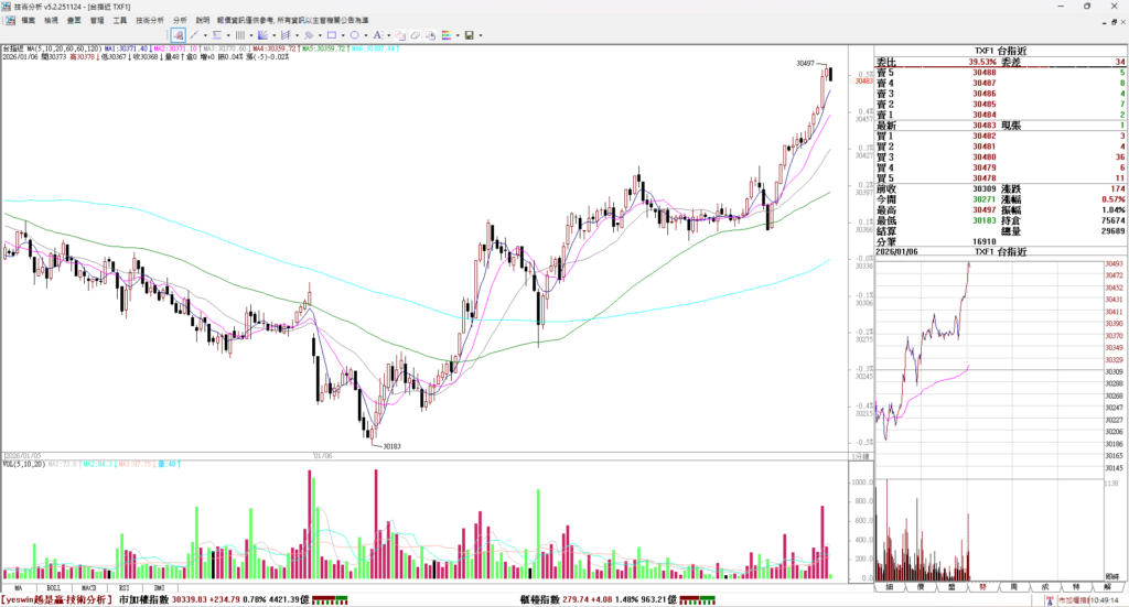 繼續上漲 174 點 股價創新高 30486