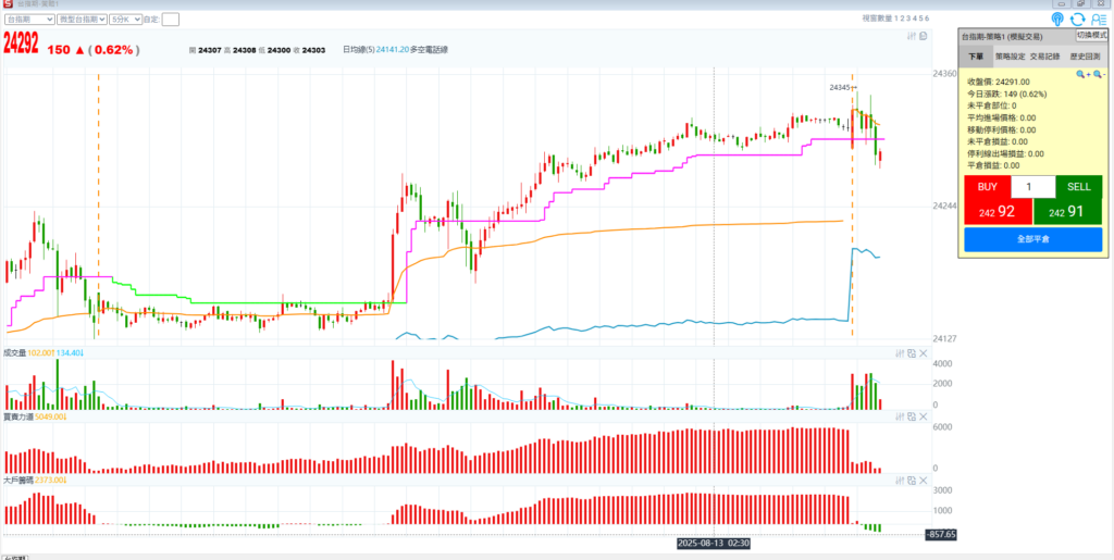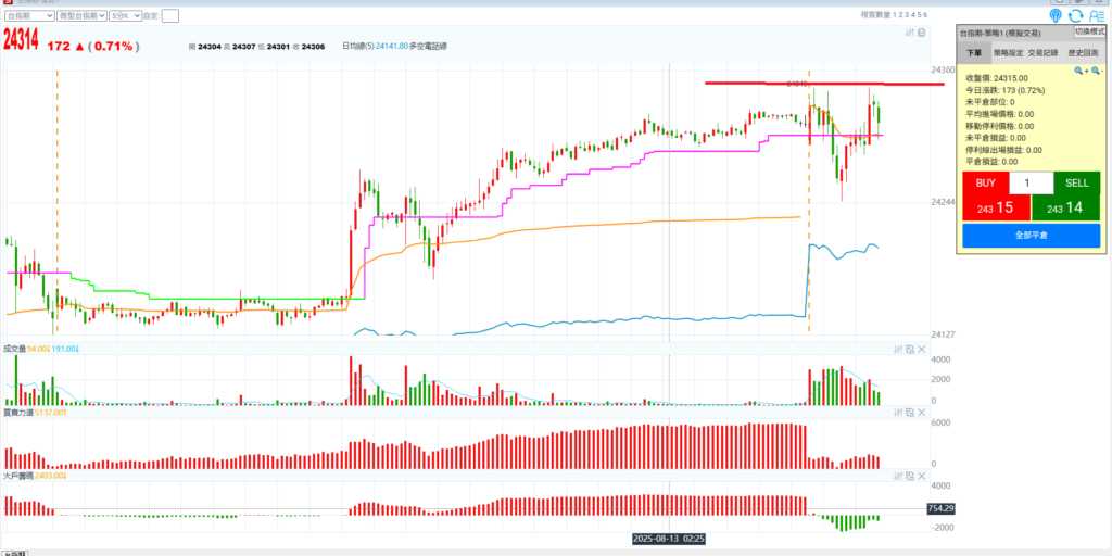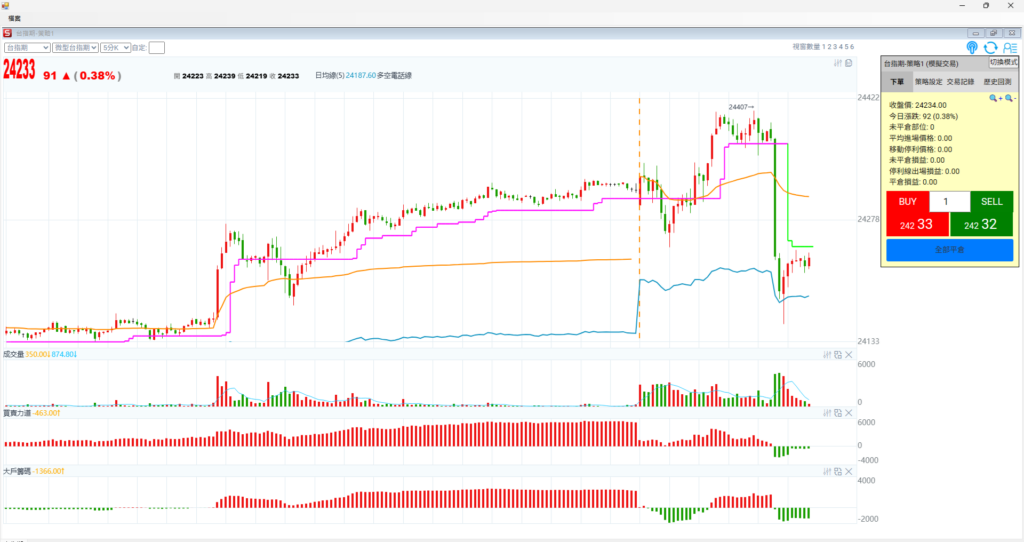 若看台指期走勢,做法是拉回找買點,一句話講完。拉回不跌可以找買進點。 看錯就停損,看對賺賠比可以拉開。