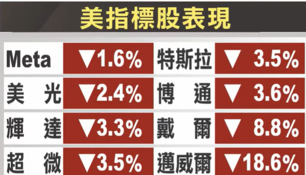 美股主要股票都下跌,輝達3.3%,超微3.5%、特斯拉 3.5% 、博通3.6% 、戴爾電腦跌 8.8% 跌很多