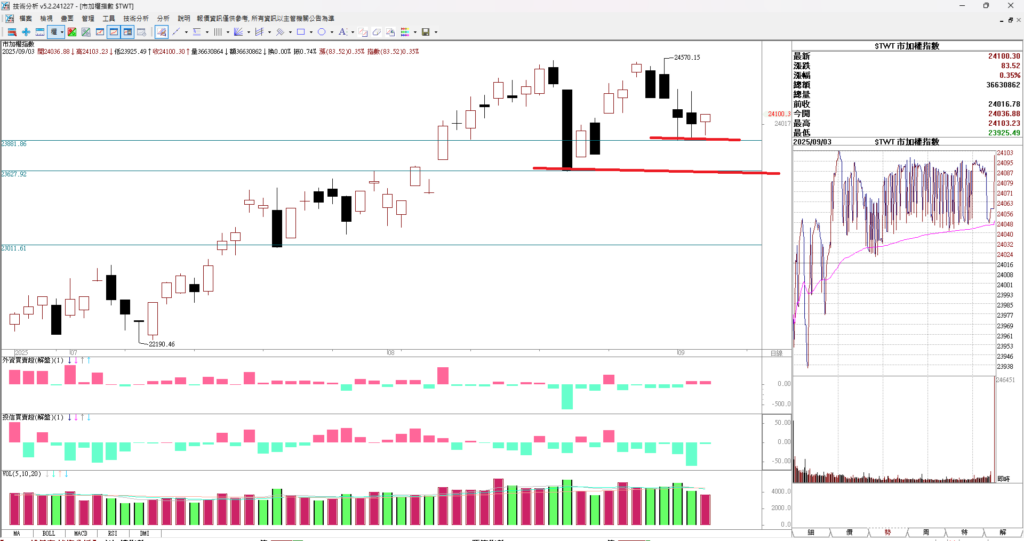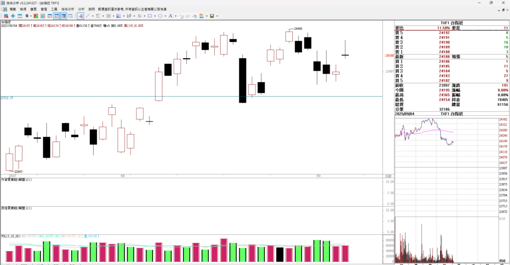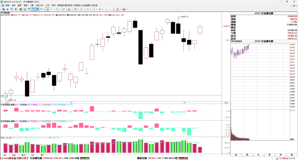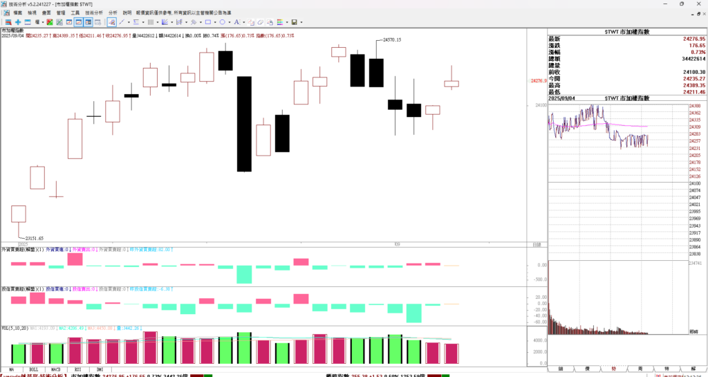 外資台指期口數(萬口)淨空單2萬4788口,增加493口空單,外資加碼期貨空單