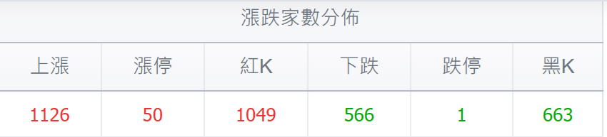 大家早安,台股昨天開低走高往上漲,雖然只上漲八十多點 但是很多股票上漲,昨天上漲股票家數有 1126家,漲停板股票高達 50家,超多,似乎完全忘記前兩天台股大跌。昨天雖然股市小漲,台積電不漲,但盤面上漲股票多,感覺台股又活了過來。 以台股大盤日K來看,連續三天低點在同一個位置,有機會築出短底。