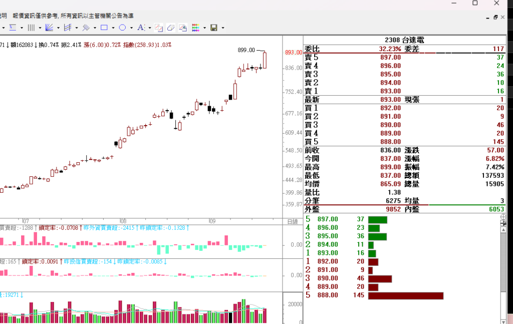 碳化矽也是現在資金追捧的族群,PCB 目前轉弱,剩下2308台達電獨撐