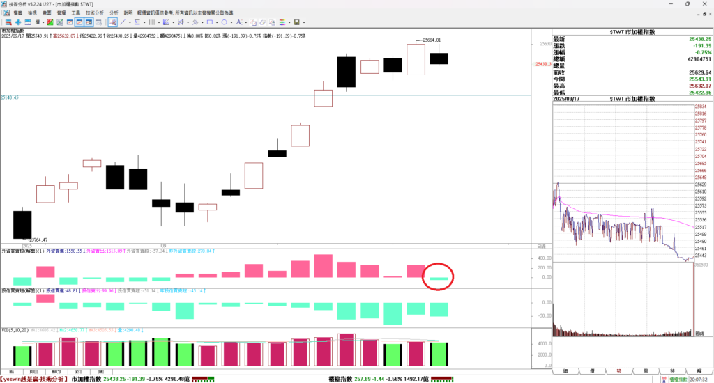 大家早安,台股昨天開低走低 下跌191點,昨天是比較差的K線,理由是昨天外資從買超轉賣超,外資結束連十一買,開始調節賣股票。而連續買超十天的自營也轉賣超,賣超五億,而投信昨日賣超51億,連續17天賣超。投信是逢低買進逢高賣出。外資和自營是順勢交易,追高殺低。昨天三大法人同步賣超,賣超114億。