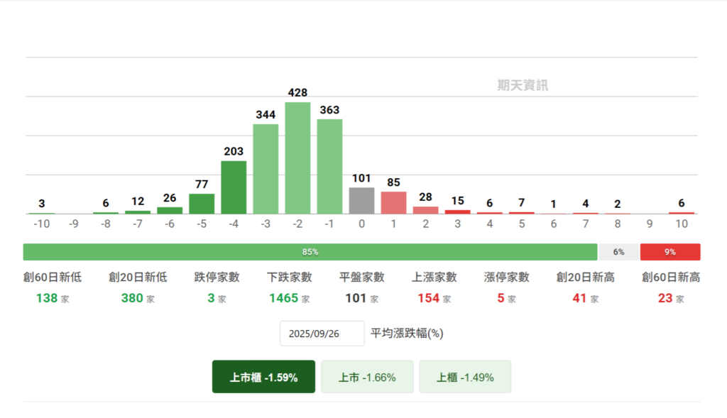 無差別下殺,一千四百多檔股票下跌,創 20 日新低股票高達 380家