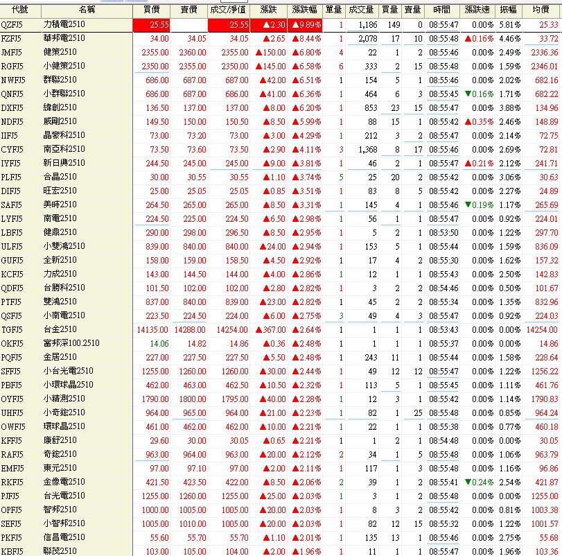 股票期貨漲幅排行,力積電、華邦電、健策、群聯、緯創’