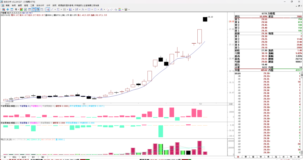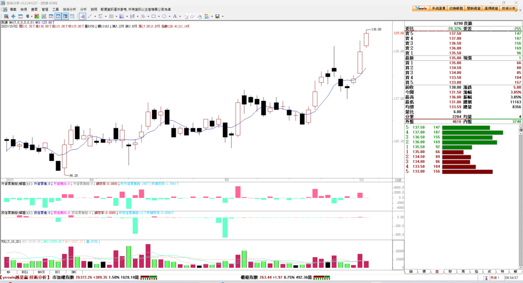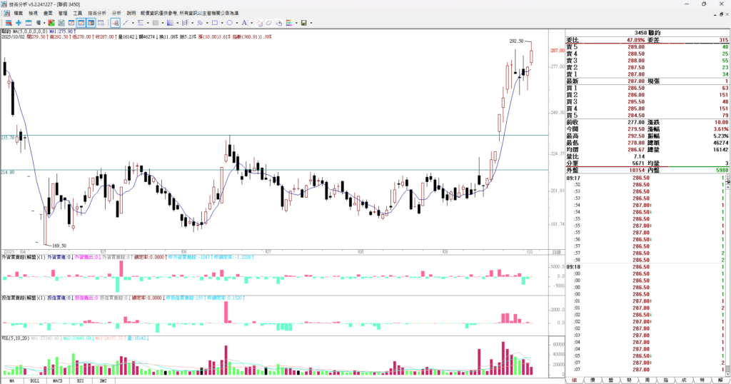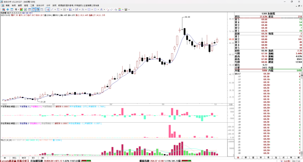 大家早安,台股昨天先漲後跌,最後收墓碑。真是多空轉向快速。原本白天大漲四百點,然後就直線掉落剩下上漲九十多點。你看下圖台指期一分K,走勢多麼像一座山,先上後下 幅度大,做交易可以賺價差喔。前天漲停的緯創昨天上漲 3.9% ,但是收個長長上引線,原本上漲的廣達卻高檔收長黑、原本突破高檔的技嘉也反向收長黑,這些都是高檔收黑的權值股,對台股有下跌的壓力。
