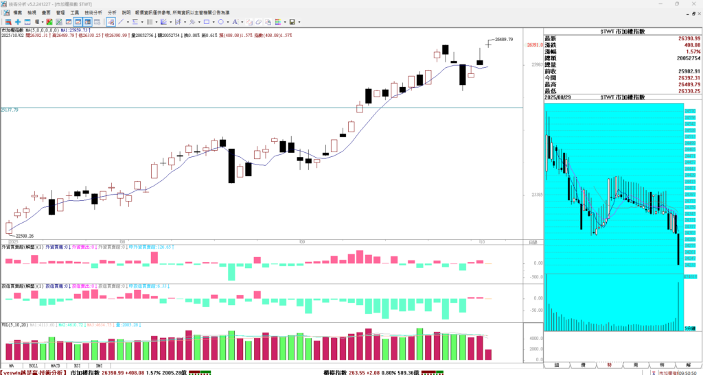 外資台指期口數(萬口)淨空單2萬2349口,增加419口空單,外資加碼期貨空單