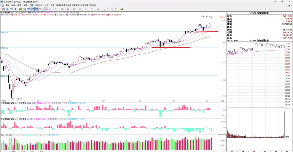 大家早安,昨天是中秋假期第一天開盤,一開盤台指期就跳空三百點,盤中最高上漲六百點,收盤上漲586。昨日開高走高收相對高。走勢就是強強滾。正在一底比一底高往上爬。 這波走勢又快又急 可能很多人沒跟上,或是被甩出場。因為回檔速度很快出場是正常,只是後面有沒有再買回來,有買回來就會賺到錢。