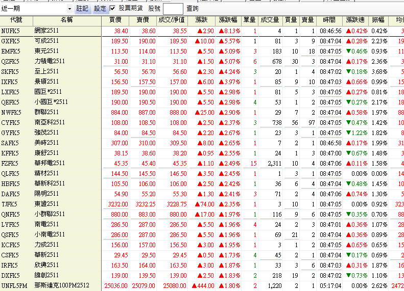 股票期貨上漲 網家、可成、東元、力積電、至上、景碩、國巨、群聯、南亞科、華新科、強茂 等股票