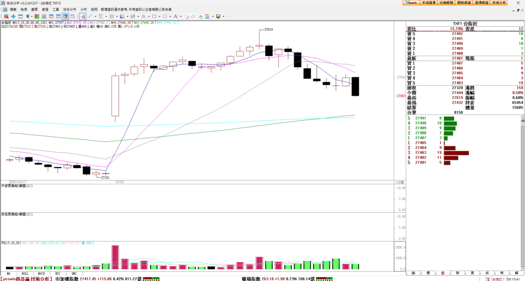 台指期上衝+ 拉回,有點要跌回開盤價喔 ,目前上漲 159