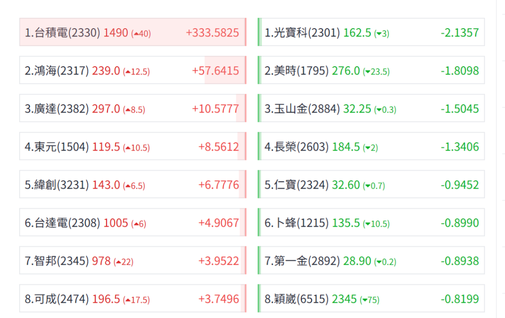 台積電 和 台達電拉抬, 指數再上攻一波 上漲 485點 ,將近五百點漲幅
