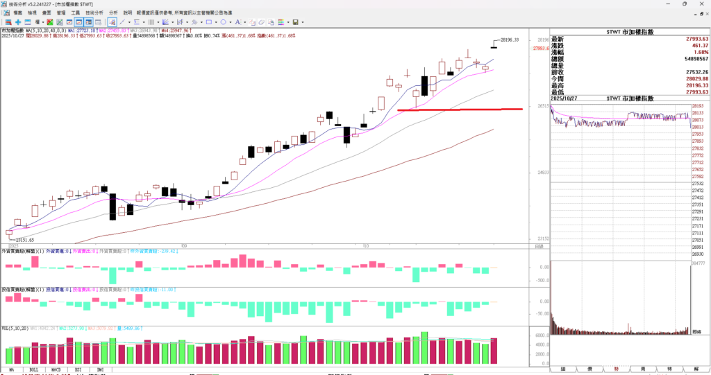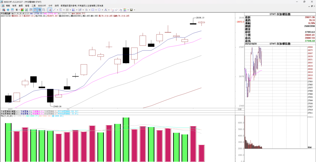 大家早安,台股昨天大漲,先是台指期跳空大漲七百點,超大的點數,跳空下跌都不見得有這麼多,跳空上漲可以七百點,開高走低再拉高 最後上漲 669點。很強,漲到28225 。 而大盤是上漲461 點漲到27993 ,期貨有明顯的正價差,這個投資人也要留意。正價差不是常態,逆價差才是。上週末出現政府想要借錢並加碼七千億 來當國安基金的資金,讓國安基金有一兆的資金量來買台股,財政部次長阮清華表示,國安基金不是只有拿來護盤,更是要來提振台股的信心。 這句話的白話文是 不只要大跌時候低買,還要拉抬指數。並表示市場有共識的話國安基金就會這麼做。