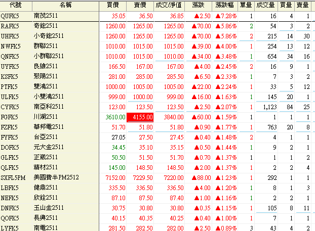 股票期貨 漲幅排行