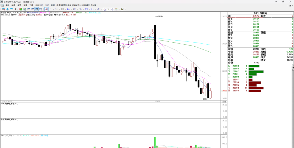 台指期開低走低 跌 128