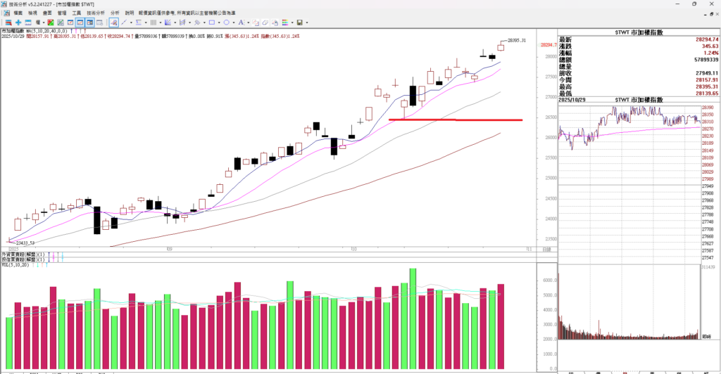 大家早安,台股昨天又大漲,大漲 345點,漲到28294 ,這樣很快會到兩萬九,甚至三萬。現在都是小心翼翼如履薄冰的看待台股上漲,這可能是史上最大的多頭,至少對台股來說是這樣。對美股也許也是。看得出川普在一路做多,總是在關鍵時刻釋放出利多消息,利多消息包括中美貿易戰緩解之類的 利空去化的消息。