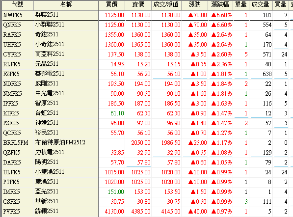 股票期貨漲幅排行,群聯、奇鋐、南亞科、華邦電、威剛、中光電、智原、神達、裕民、力積電、雙鴻、亞光等股票