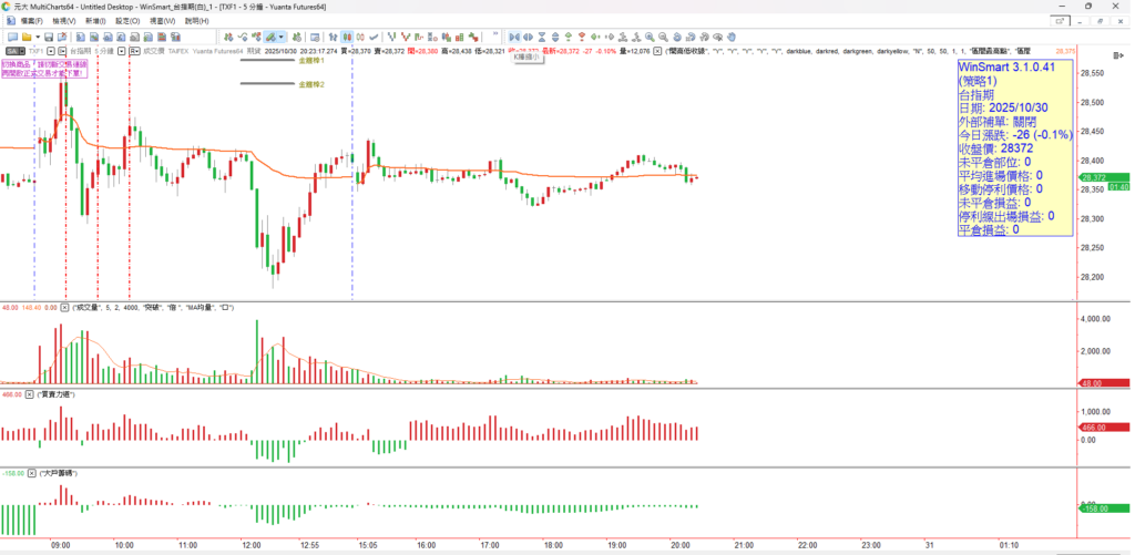 看一下昨天台指期五分k走勢,走勢不連續是有一點難,上上下下的掃停損。原本以為會下跌收低沒想到尾盤又拉抬,主力真的不給跌。