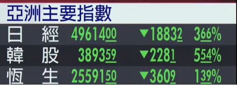 韓國股市跌5.5%,還融斷。日經跌3.66%,台股目前跌2.4%跌幅算小