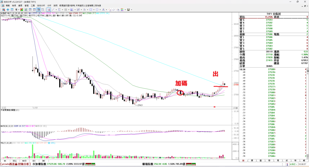 紀錄一下今日交易,先是空單留倉,今日加碼兩口單