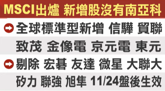 納入MSCI的名單、金像電、京元電、東元、致茂等股票