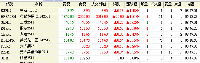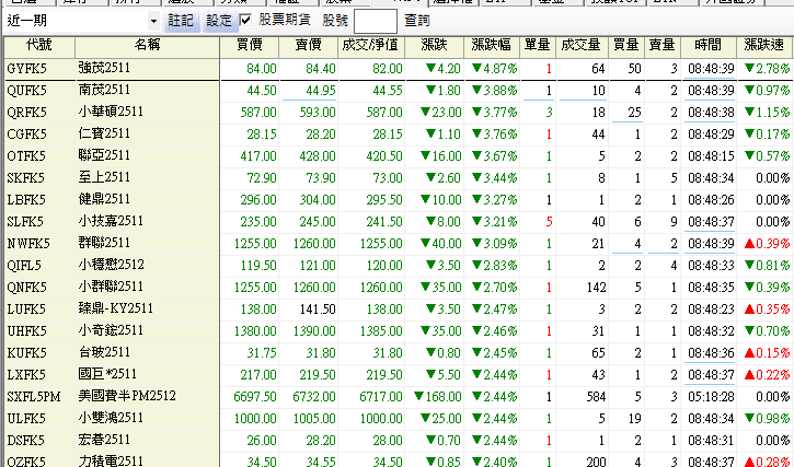 今天開盤 股期大多下跌 上漲寥寥可數,中石化、正崴、啟碁、友達等股票小漲 漲幅也不到 1.5%