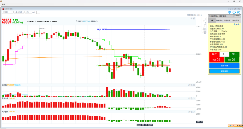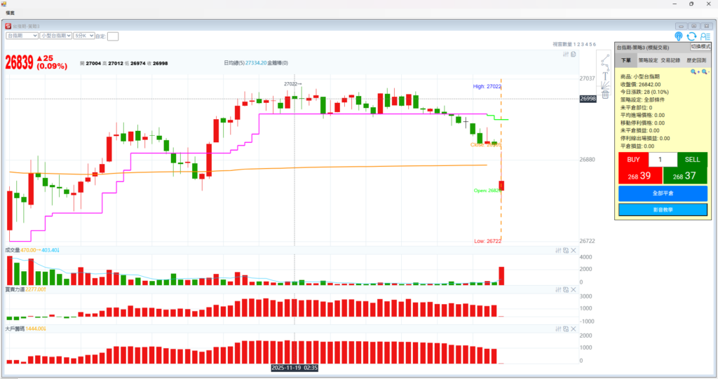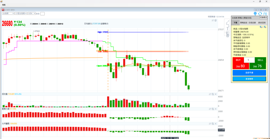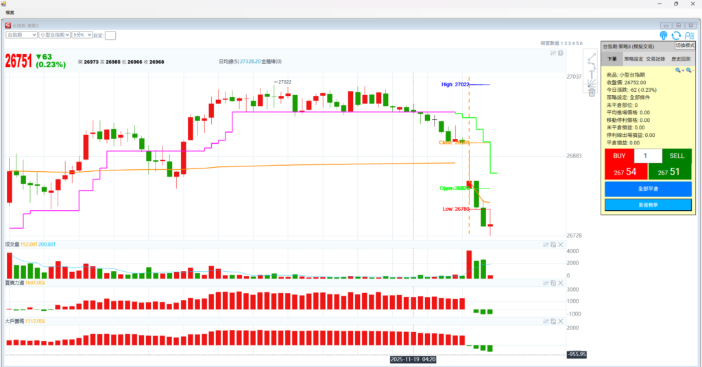 大家早安,台股昨天大跌 691點 跌到26756,11月到目前為止已經跌了1477點,將近1500的跌幅,10月台股大漲2412點,已經跌回62%了,若整根長紅被吃掉,就是高檔紅黑並列,可能走勢反轉 ? 不得不謹慎。 好在我們已經多天在交易日記有分享要對行情回檔要有準備,所以提前有準備的朋友都比較能從容應對。事先想好交易計畫 以免手忙腳亂。