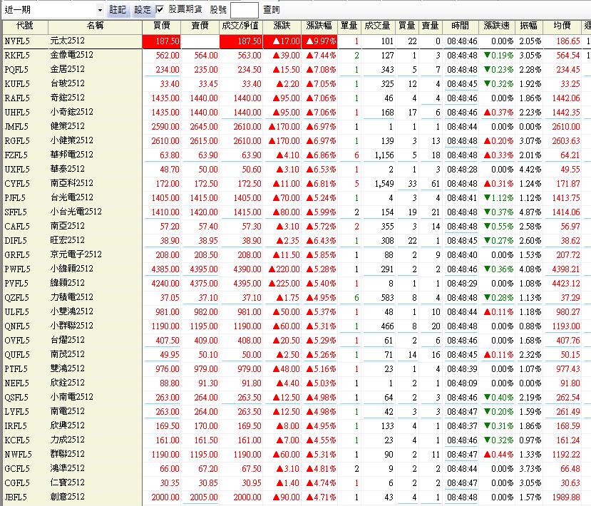 股票期貨 漲一片,元太漲停、金像電7.4%、金居、台玻、奇鋐、健策、華邦電、華泰、南亞科、台光電、南亞、京元電等股票都大漲超過 5%