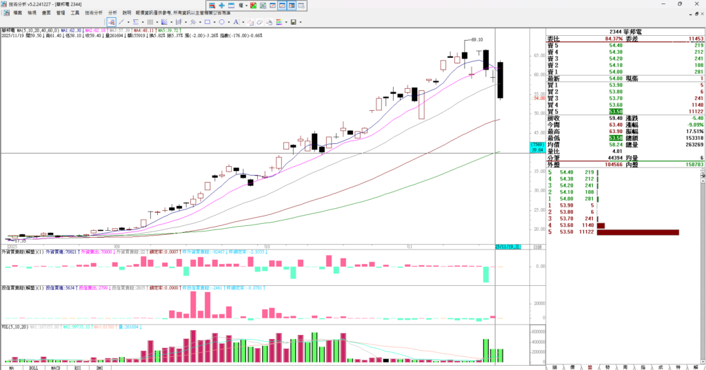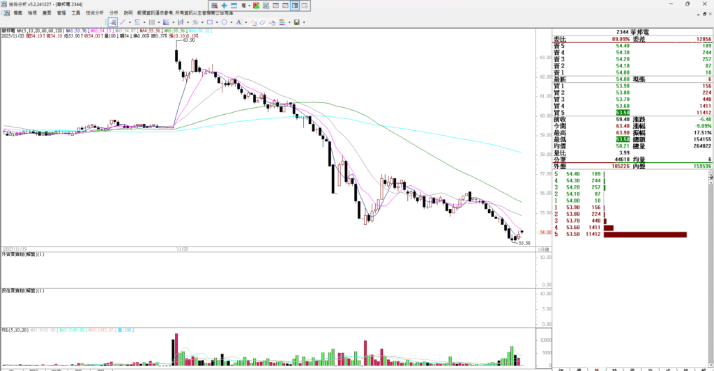 華邦電跌停 日K