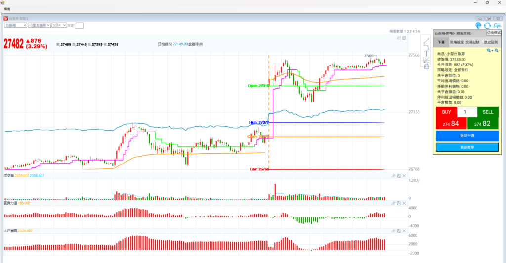 看WINSMART五分K,昨天行情震盪走低,綠色電話線往下走,偏空看。價格不過關鍵價 屬於反彈空的格局。