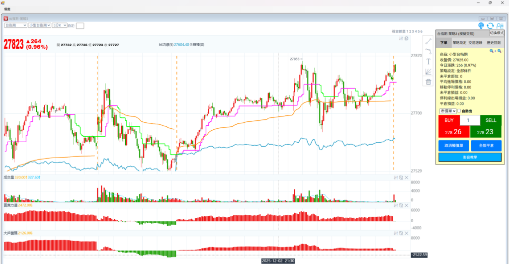看台指期五分K + 5MA + 20MA ,早盤走山下跌,做一個假突破。下午過後一路往上又漲上來。現在短線區間震盪。來回操作。