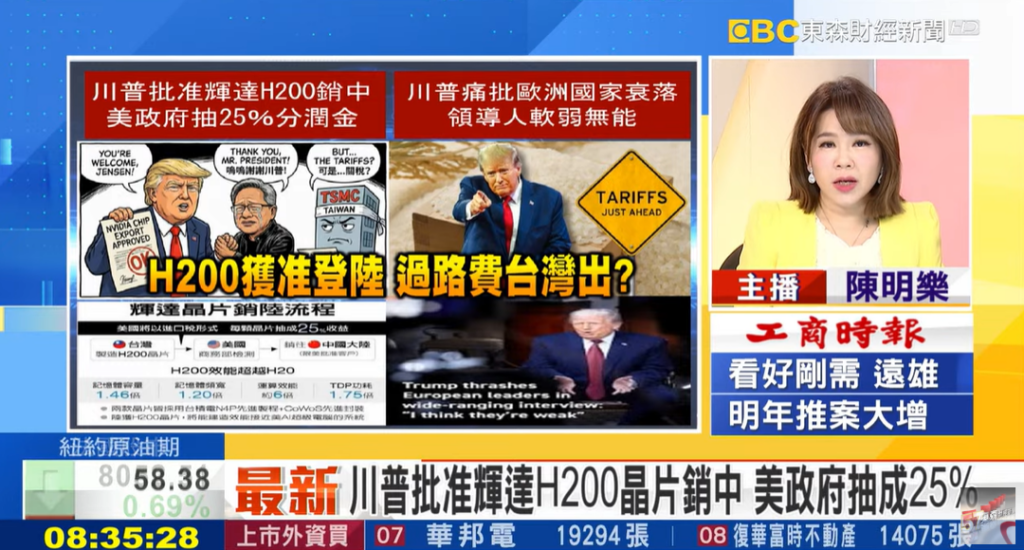 輝達銷售 晶片到大陸,美國政府要抽 25% 分潤,這25% 要從台灣的關稅來徵收。就是美國賣東西給中國,台灣供應鏈要買單 ???