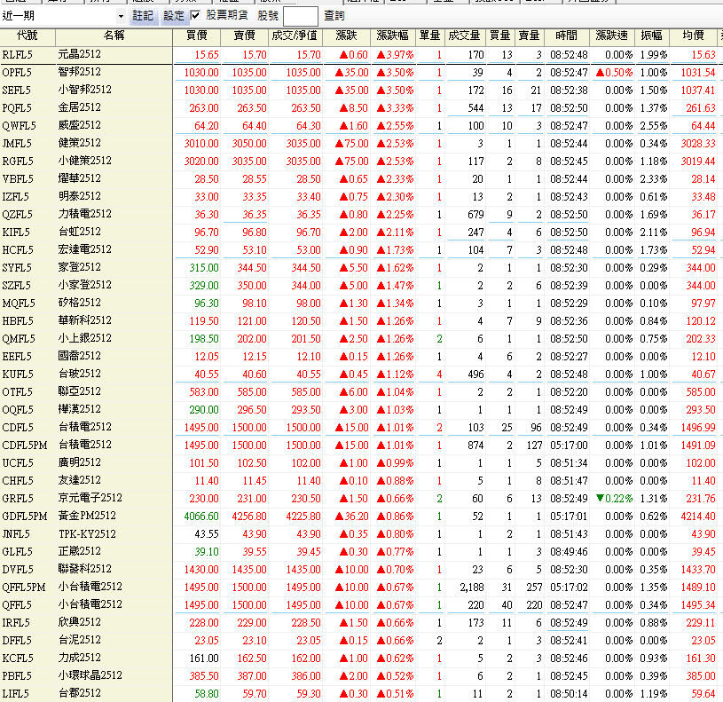 股票期貨上漲的有 元晶、智邦、金居、威勝、健策、明泰、台虹 等股票
