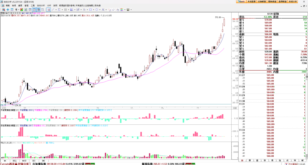 亞翔噴上去 418漲到 580