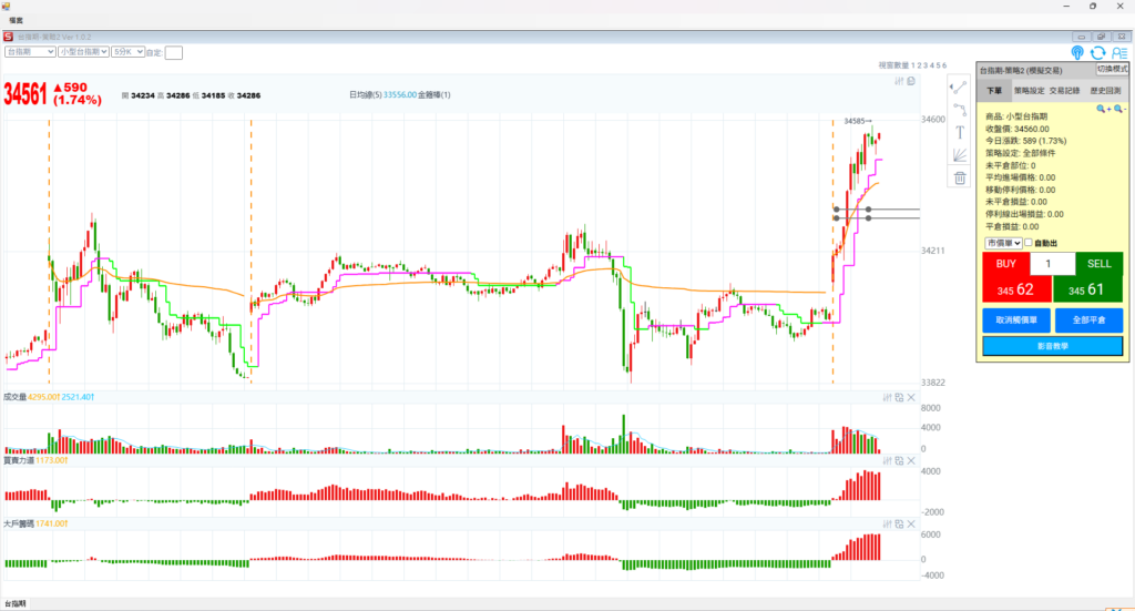 看看台指期五分K走勢,開市第一天開高震盪走低,表示台股有賣壓,這在稍早說是權值股收黑的緣故。但是下午三點過後指數又向上漲 179點,走勢沒有走弱的樣子。