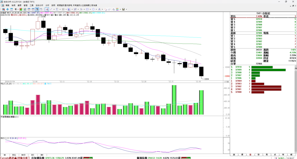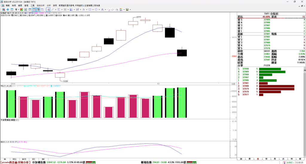 繼續大跌 又跌到20日均線的位置,33000點左右