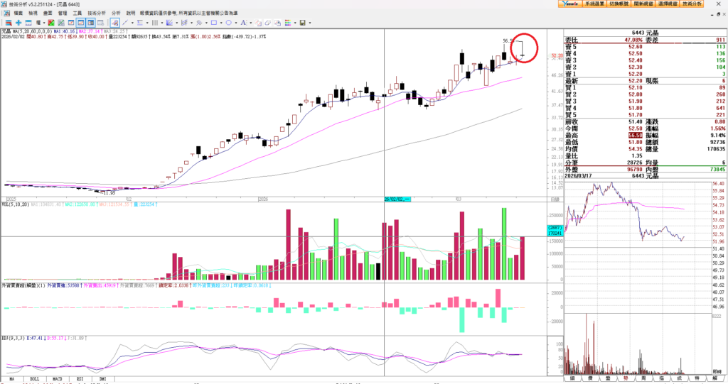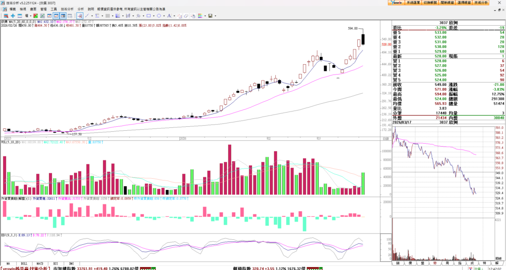 3037欣興 高檔爆量黑K 創新高後收黑,過去關緊閉,今天第一天出關,主力就迫不急待獲利入袋