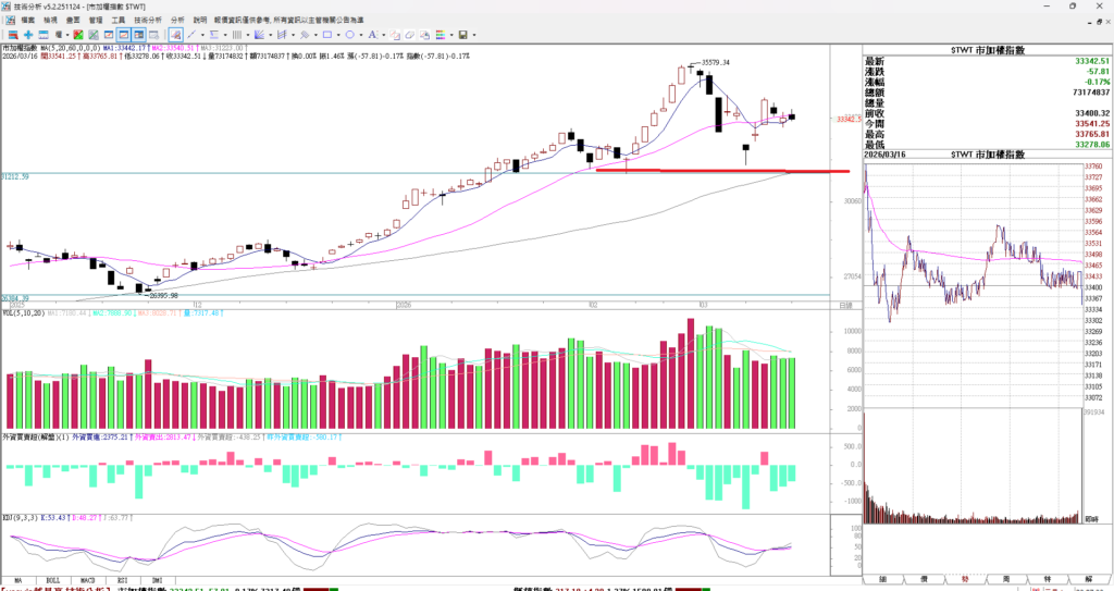 大家早安,台股最近算是區間震盪,隨意一個震盪就六百點,每日平均ATR有1263點,一千兩百的距離一天就來,所以波動很大。目前台股在五日均線的位置做攻防戰,過去幾天五日均線都是壓力,漲不過去就跌回整理 ,但昨天晚上夜盤向上突破五日均線,這點持續觀察。