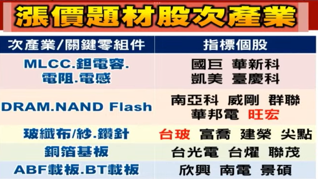 - 傳產亮點: 塑膠化學(台塑四寶)與玻璃族群(台玻)表現不俗。