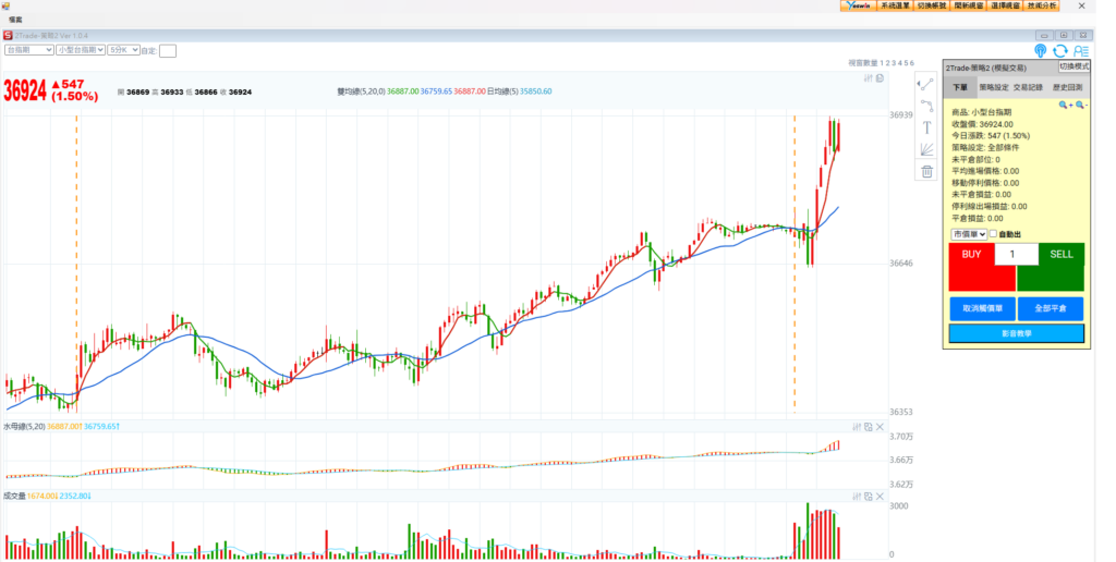 台指期一分K 走勢震盪上漲,目前是強勢多方 不要隨意放空