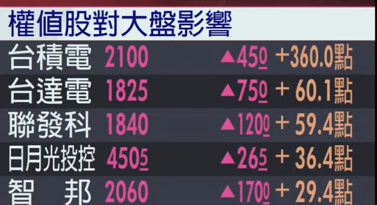 - 半導體權值: 台積電 (2330) 收在 2,055 元天價,扮演定海神針。