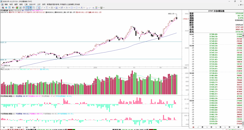 台股高檔收黑,這波漲勢休息了 37510
