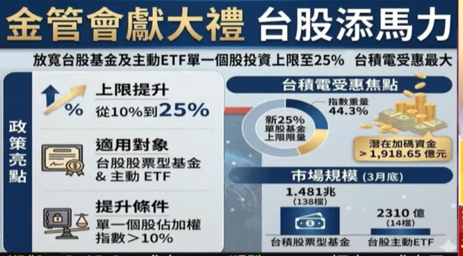 週五台股大漲一千三百多點,漲跌股票有 50檔,昇陽半導體 (8028) 、聯發科、雙鴻、金像電、奇鋐、亞光 、景碩、欣興 等股票都榜上有名。走勢正熱。政府作多,放寬基金單一持股限制,放寬到 20%。