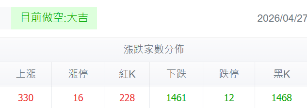 金天大漲一千一百點,但是大多數股票下跌 下跌 1461家,上漲只有 330家,小心囉